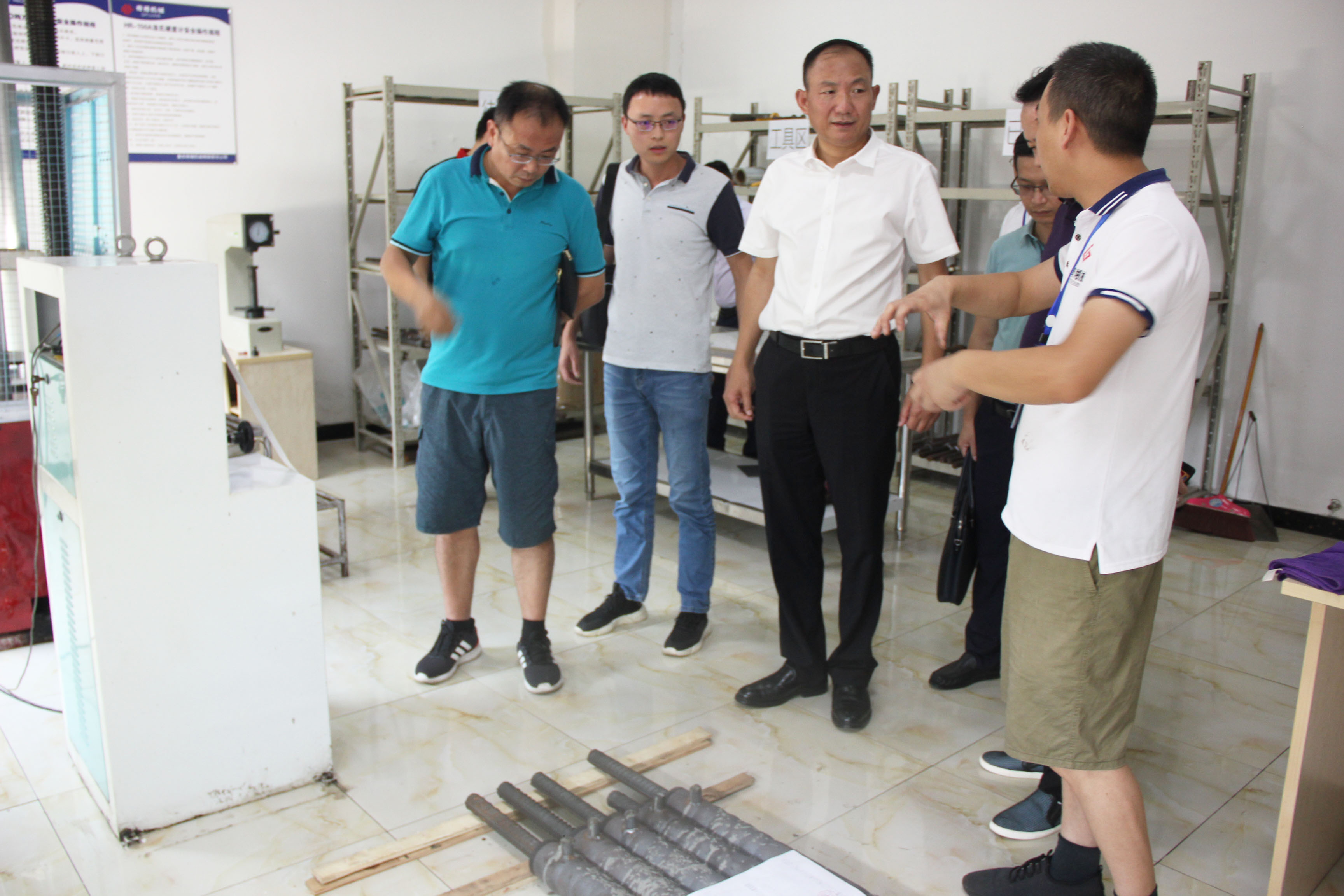 考察期間,由奇甫副董事長梁紹輝帶領生產(chǎn)技術團隊陪同成都城投城建科技有限公司領導一同實地參觀了奇甫生產(chǎn)基地,梁懂就奇甫灌漿套筒的自動化設備生產(chǎn)能力、成品工藝、產(chǎn)品運用市場的口碑效應以及合作大型案例等情況向領導們做了詳細介紹。隨后,為更好的驗證奇甫生產(chǎn)灌漿套筒的產(chǎn)品質量,由技術工程師曾華均在實驗室做現(xiàn)場拉拔試驗??疾靾F的領導們聽取介紹和觀看現(xiàn)場試驗后,對奇甫公司良好的工作環(huán)境、有序的生產(chǎn)流程、嚴格的質量控制、和諧的工作氛圍、勤奮工作的員工及這些年取得成績表示贊賞。